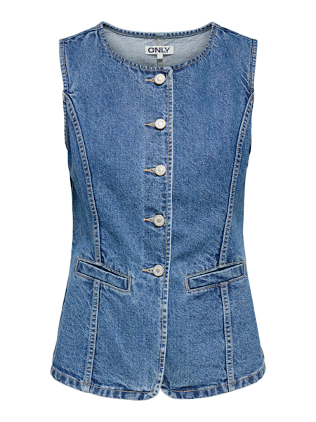 ONLY, Giulina S/L Button Waistcoat, Medium Blue Denim, £35